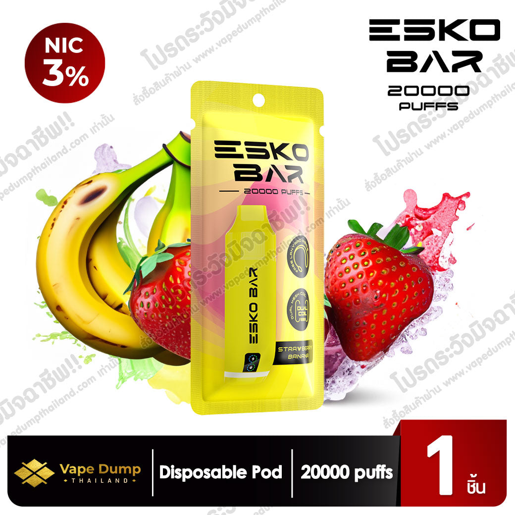 ESKO Bar Disposable Pod 20000 Puffs: พอดใช้แล้วทิ้งที่มาพร้อมรสชาติหลากหลายESKO Bar Disposable Pod 20000 Puffs เป็นอุปกรณ์สูบบุหรี่ไฟฟ้าแบบใช้แล้วทิ้งที่มาพร้อมการใช้งานยาวนานถึง 20,000 ครั้ง ด้วยดีไซน์ที่ทันสมัยและสะดวกสบาย ESKO Bar เป็นตัวเลือกที่ยอดเยี่ยมสำหรับผู้ที่ต้องการพอดที่ใช้งานง่ายและให้รสชาติที่เต็มเปี่ยมคุณสมบัติหลักของ ESKO Bar Disposable Pod 20000 Puffs: