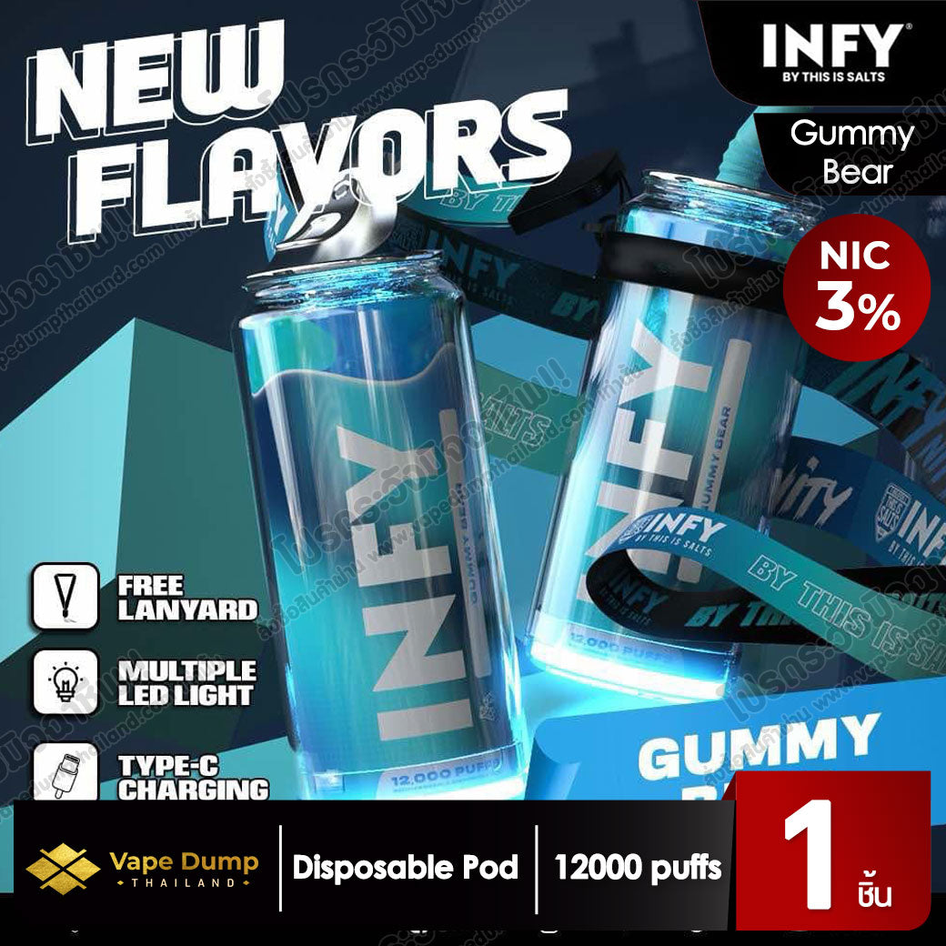 INFY Disposable Pod 12000 Puffs: พอดใช้แล้วทิ้งที่มาพร้อมรสชาติหลากหลายและความสะดวกสบาย