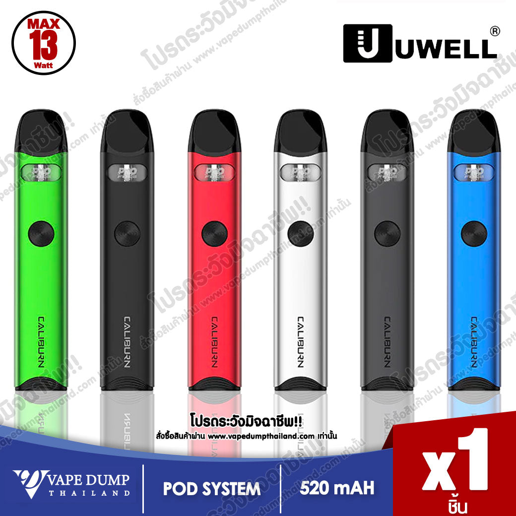 UWELL CALIBRUN A3 Pod Kit มาพร้อมกำลังไฟสูงสุด 15W และ แบตเตอรี่ในตัว 520 mAh ตัวเครื่องมีขนาดเล็กกะทัดรัด วัสดุอลูมิเนียมอัลลอยด์ หรูหรา พรีเมี่ยม และทนทาน