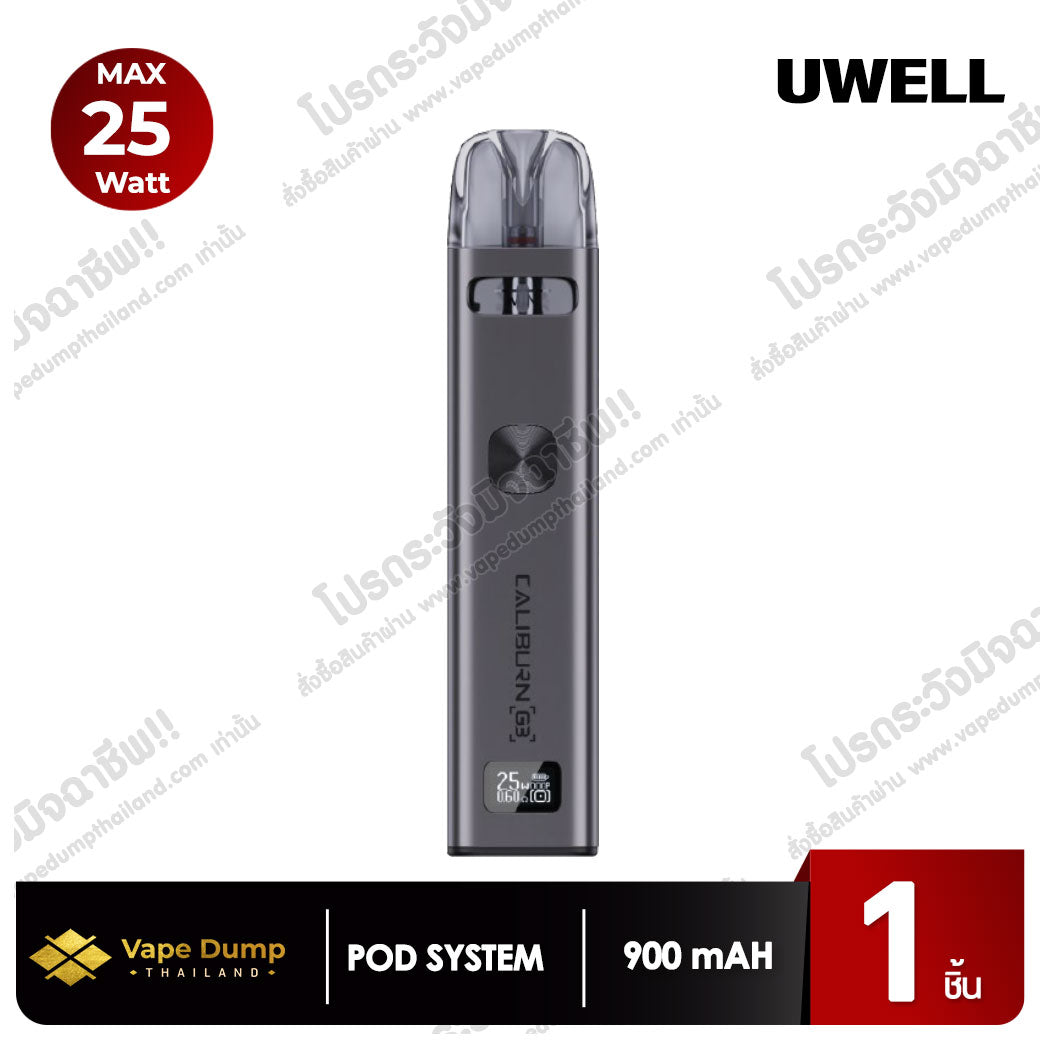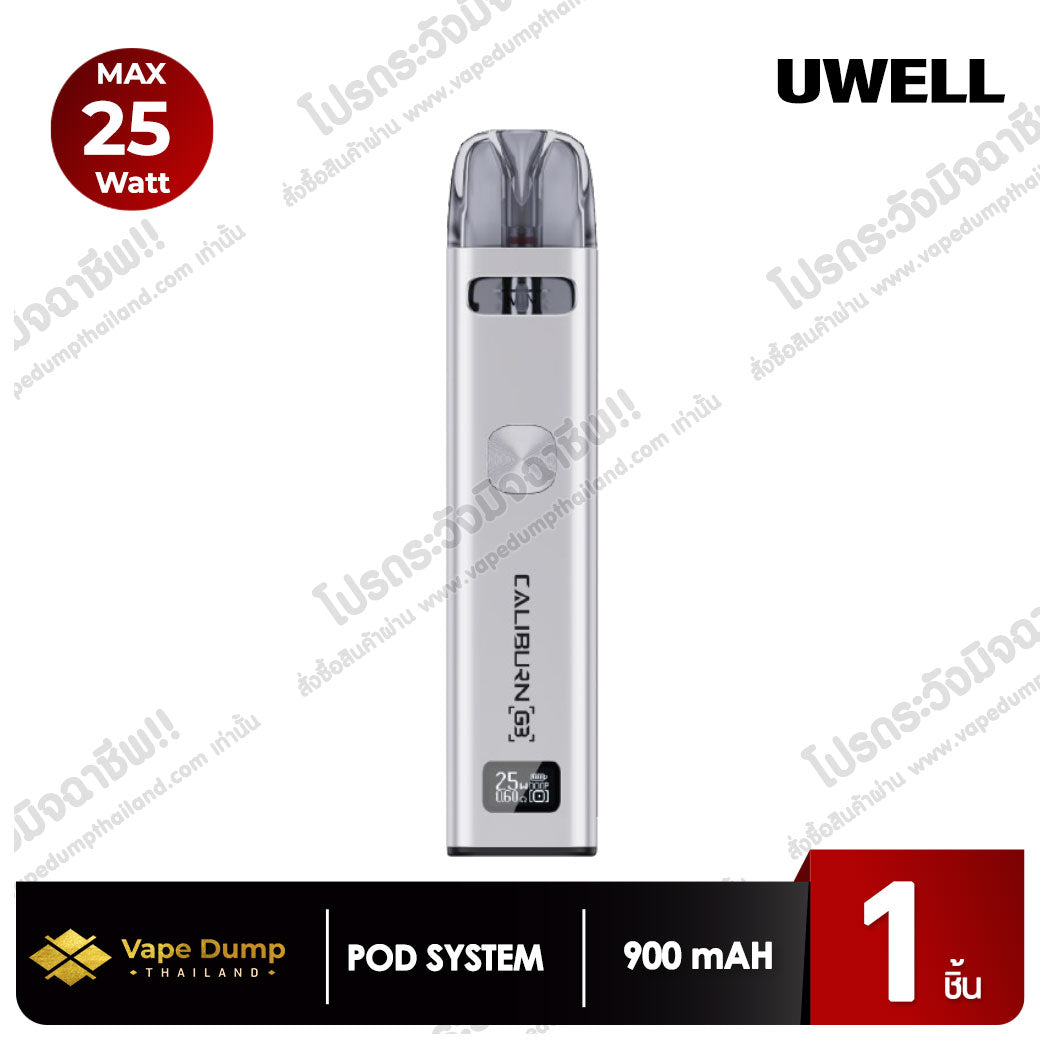 Uwell Caliburn G3 Pod Kit เป็น Caliburn ตัวแรกในซีรีส์ G ที่รองรับ 0.6 Ω มีกำลังไฟสูงสุดที่ 25W